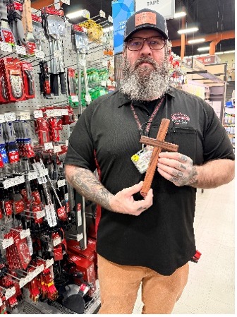 Our friend from the local hardware store shared with us his story of sobriety and the challenges he has been overcoming. We are so excited to share a cross with him.